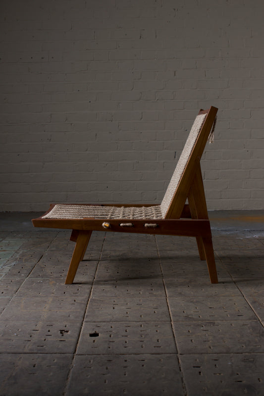 Handcrafted Lounge Chair, Made of Teak Wood and Woven Rope